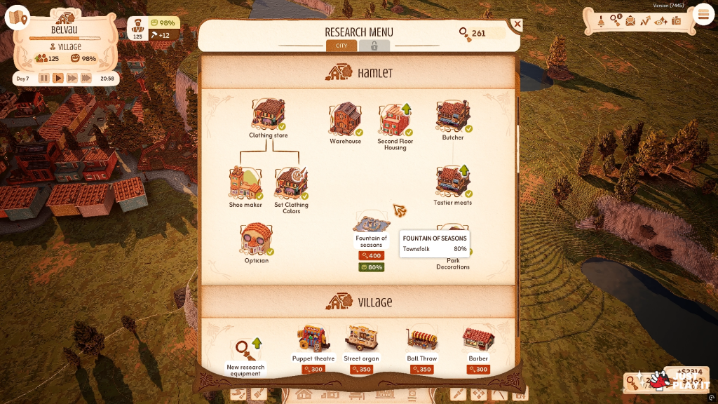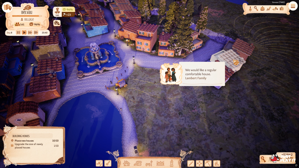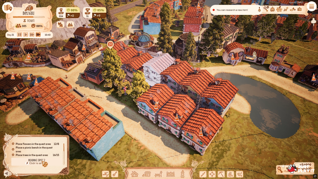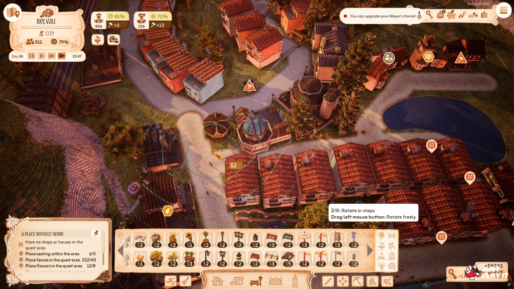 لكن البناء لا يتوقف عند المساكن، إذ تحتاج لتوفير رفاهية متكاملة عبر تزيين الأحياء وبناء المحلات والخدمات مثل المدارس، المستشفيات، المتنزهات وغيرها. نسبة سعادة السكان في أعلى الشاشة تعكس مدى رضاهم وتوجهك نحو تحسين المدينة.