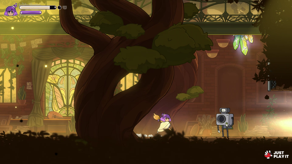 أسلوب اللعب هو بلا شك أبرز ما يميّز Constance. اللعبة تقدّم تجربة Metroidvania متقنة تجمع كل الأساسيات المعروفة في هذا النوع، وتقدّمها بطريقة سلسة وممتعة منذ اللحظات الأولى. حركة البطلة سريعة ومرنة، والبلاتفورمينغ سلسة وممتعة، تتيح القفز والتسلق والتحرك بين الحواف والمنصات بسهولة، ما يخلق مستوى تحدٍ قوي دون أن يتحوّل إلى إحباط.