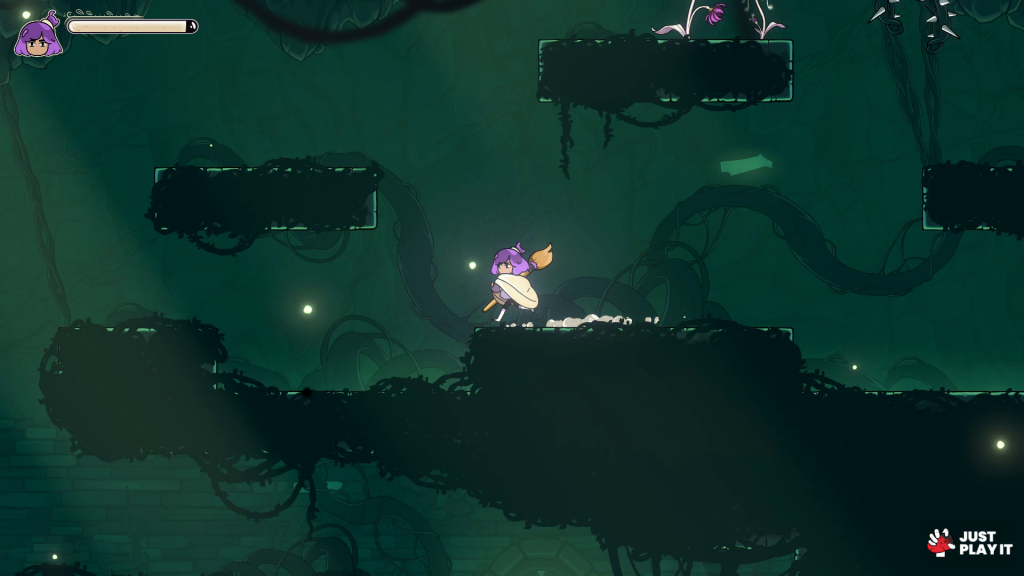 القتال سريع الإيقاع، ويصل أحيانًا إلى أسلوب Hack and Slash الخفيف، ما يجعل المواجهات قصيرة لكنها مليئة بالحركة والإثارة. مع كل تقدّم، تكتسب البطلة قدرات جديدة تحسّن القتال وتسهّل الحركة، كما تفتح لك مناطق جديدة بشكل منطقي ومتناسق. هذا يجعل نظام التقدّم متوازنًا جدًا؛ فلن تجد نفسك أضعف من أعداء المناطق الجديدة، ولا أقوى بشكل مبالغ فيه.