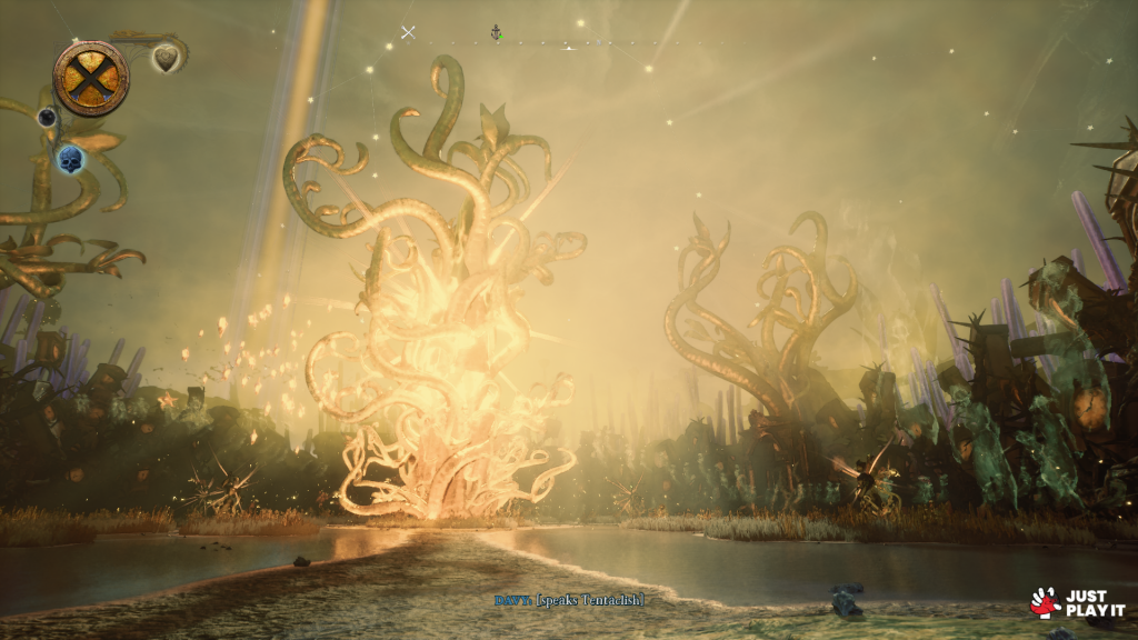 الاداء الصوتي أسطوري خصوصًا لصوت دايفي! ستشعر حرفيًا وكأنهم أحضروا قرصانًا حقيقيًا من القرن الـ15 ليؤدي الدور. صراخه وسط المعارك ينقلك إلى أجواء القراصنة فعليًا ويعطيك دفعة أدرينالين رهيبة.
