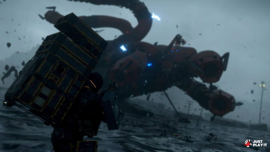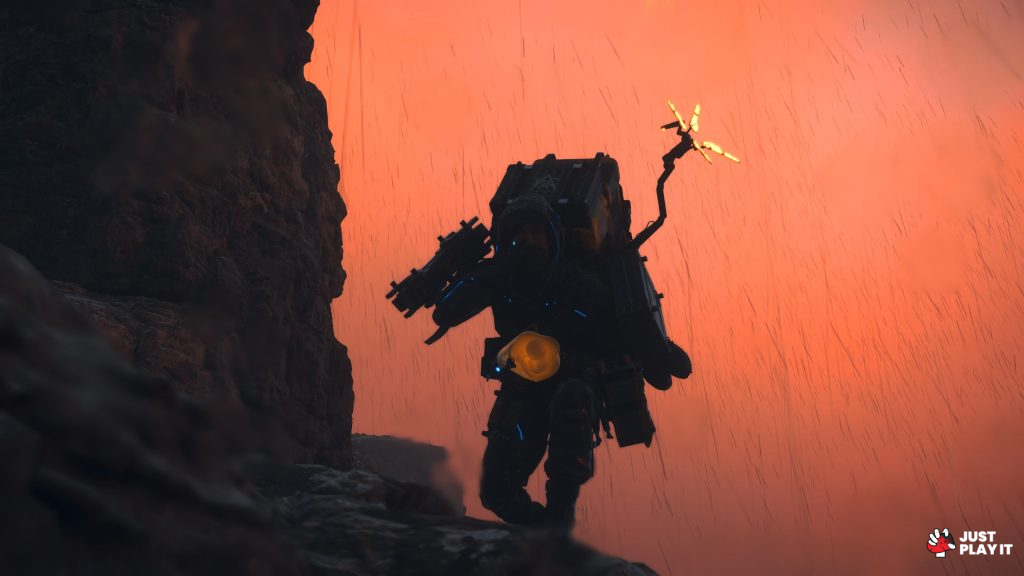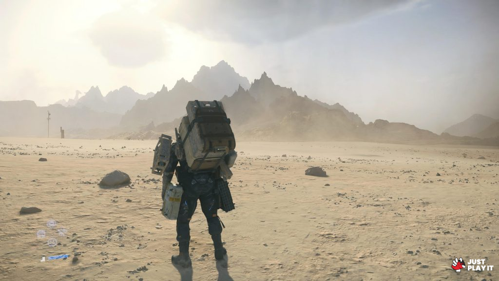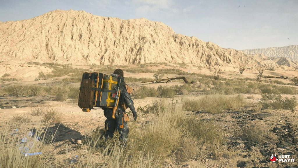 دعونا أولا نتفق أن عالم Death Stranding غريب، ليس فقط في شكله أو عزلته بل في أفكاره أيضا، فأنت ستمتلك ترسانة من المعدات التي تستطيع استغلالها لصالحك بأفكار متنوعة كالمسبار مثلا و الذي يساعدك في رصد مواقع الـBTs من جهة، و يساعد على مسح التضاريس القريبة لمعرفة درجة الخطر، كما يمكن أن يوفر بعض الإضاءة في الاماكن القاتمة.