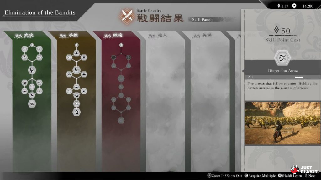 أما المهارات فهي مرتبطة بأنواع الأسلحة المستخدمة مما يمنح اللاعب خيارات متعددة أثناء القتال ولكن لا يمكن تغيير السلاح أثناء المعركة.