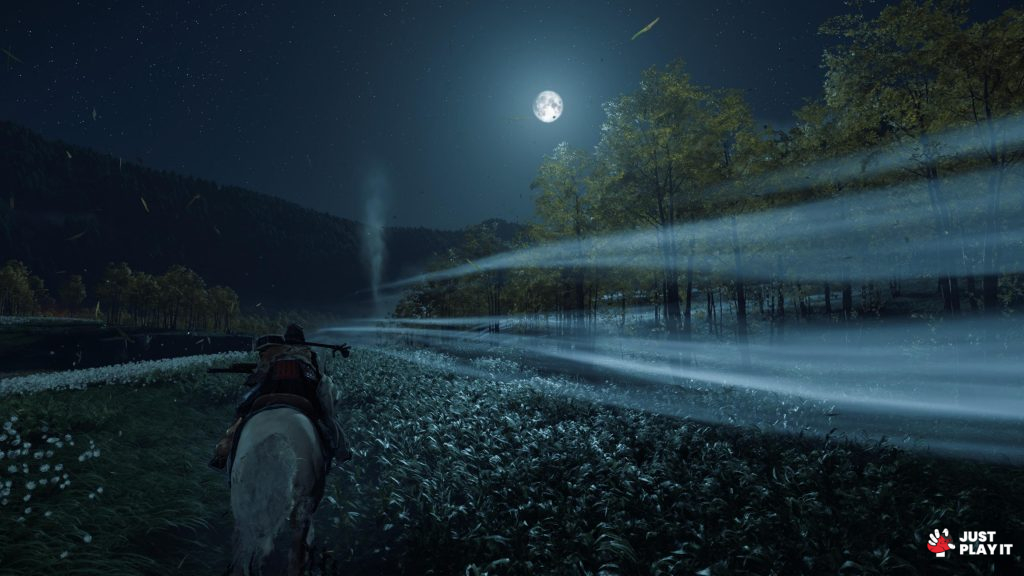 على غرار Ghost Of Tsushima، تقدم Ghost Of Yotei نفس النظام من حيث التوجه إلى الوجهات، فكل ما عليك فعله هو تحديد وجهتك ثم امتطاء حصانك و المسح على وحدة التحكم لتتبع الرياح التي ستقودك إلى المكان المنشود.