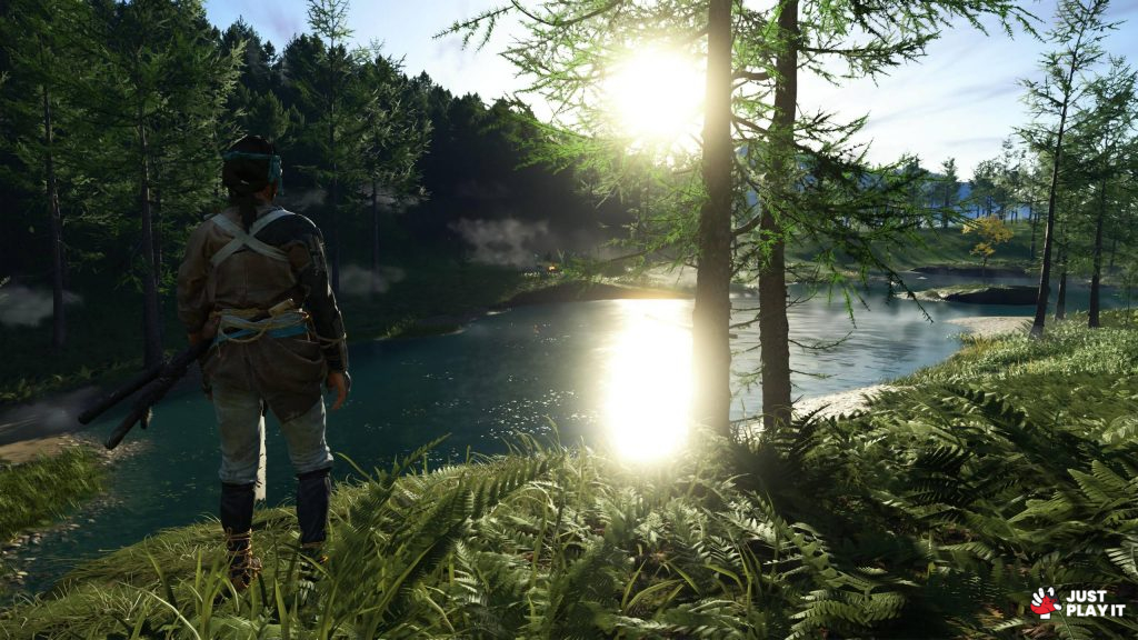 لعبة Ghost of Yotei هي عبارة عن لوحة فنية تُمتع العيون، فمع كل رحلة قصيرة خضتها من نقطة إلى أخرى، أجبرني عالمها الفاتن على التوقف والتأمل ولو لوهلة، توقفت كثيرا و التقطت صورًا كثيرة لجمال عالم إيزو، من بيئته المخضرة و الثلوج التي تغطي جبل يوتيه، مع أشجاره الملونة بالأبيض الناصع و الأصفر العسلي و الأحمر الرامز للينابيع الساخنة.