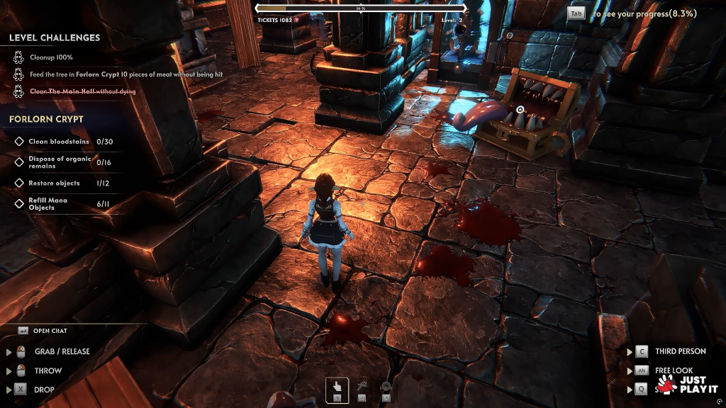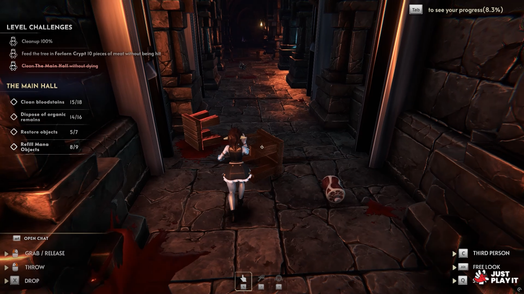 في البداية، كل مرحلة تُقدم لك عددًا من المهام: تنظيف الدماء باستخدام أداة slime، التخلص من الأشلاء في صندوق خاص، إعادة الأثاث لمكانه، وإصلاح الأعطال الكهربائية. كل شيء يبدو بسيطًا… حتى تبدأ الفخاخ بالتحرك.