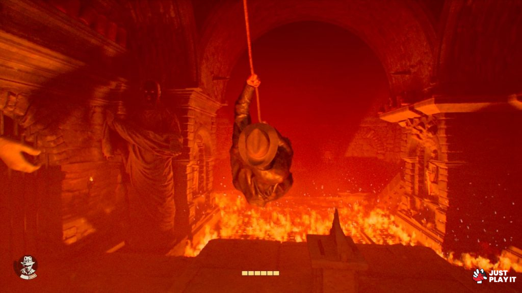 أنت تمتلك السوط الذي يسمح لك بالتنقل و التأرجح لين بعض الجزئيات و الأماكن كما يسمح لك بالتسلق و الوصول إلى مناطق معينة يصعب الوصول إليها من دونه ، فضلا عن قيام انديانا بصعود سلم مثلا ، هل تعلم ما الجانب السلبي هذه النقطة المتعلقة بالتسلق و الصعود و الهبوط ؟ أن جونز يصبح بطيئ بشكل مزعج قليلا خاصة في تجربة مغامرة من هذا النوع .