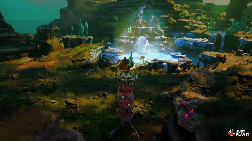 المنارة هي محور التحكم الأساسي حيث تُطلق شعاعًا من الضوء يمكن توجيهه نحو كرات متوهجة تفتح الجسور أو تُطهّر الجذور الملوثة بالظلام و كأن النور سلاحك الوحيد ضد الخراب.