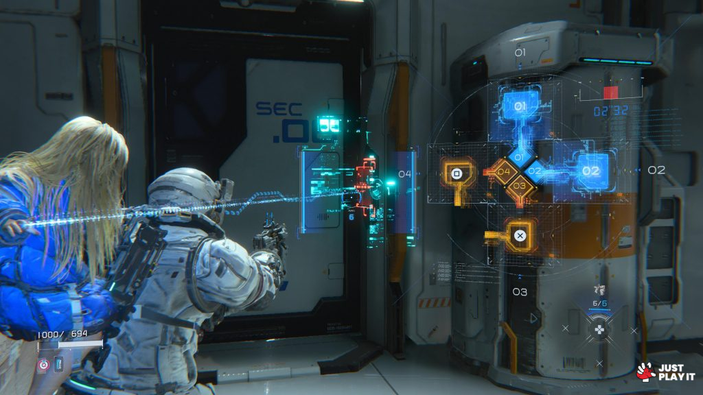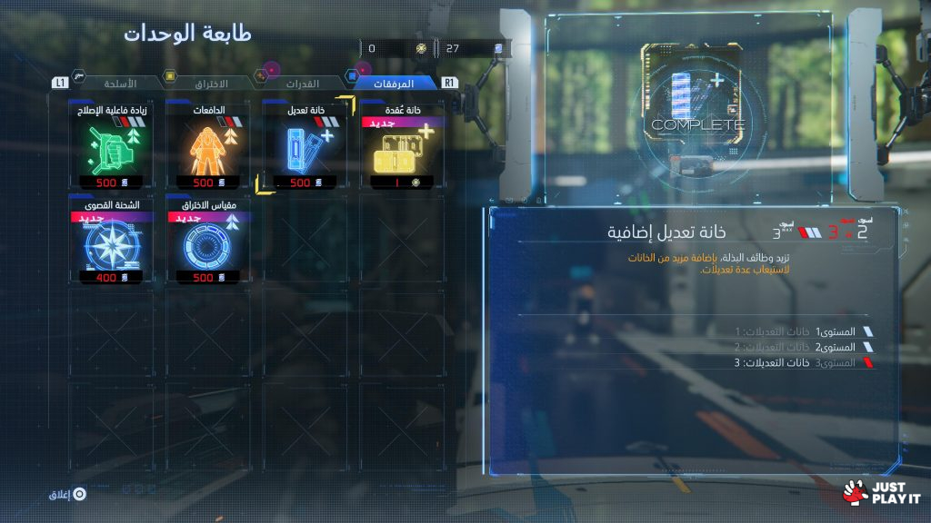ما أعجبني في اللعبة هو نظام التطويرات المتنوع. يمكن تطوير كلتا الشخصيتين، سواء عبر تحسين قدرات Hacking وزيادة قوة اختراق “ديانا”، أو تقوية السلاح الرئيسي، أو زيادة تحمل بدلة Hugh. ويتم ذلك من خلال جمع عناصر تُعرف باسم “مكونات التطوير”، والتي يعثر عليها اللاعب أثناء تقدمه في المراحل.