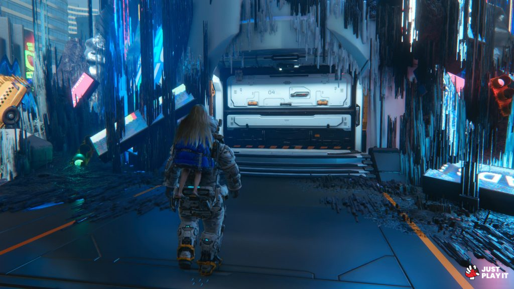 أولاً، نود التطرق إلى طريقة سرد قصة PRAGMATA، وكيف تم تقديمها عبر أساليب متنوعة. أبرزها المشاهد السينمائية، والتي كانت مبهرة بصريًا، خاصة مع البيئة المتطورة والذكاء الاصطناعي المتجسد في هيئة روبوتات على سطح القمر، ما أعطى طابعًا سينمائيًا جميلًا.