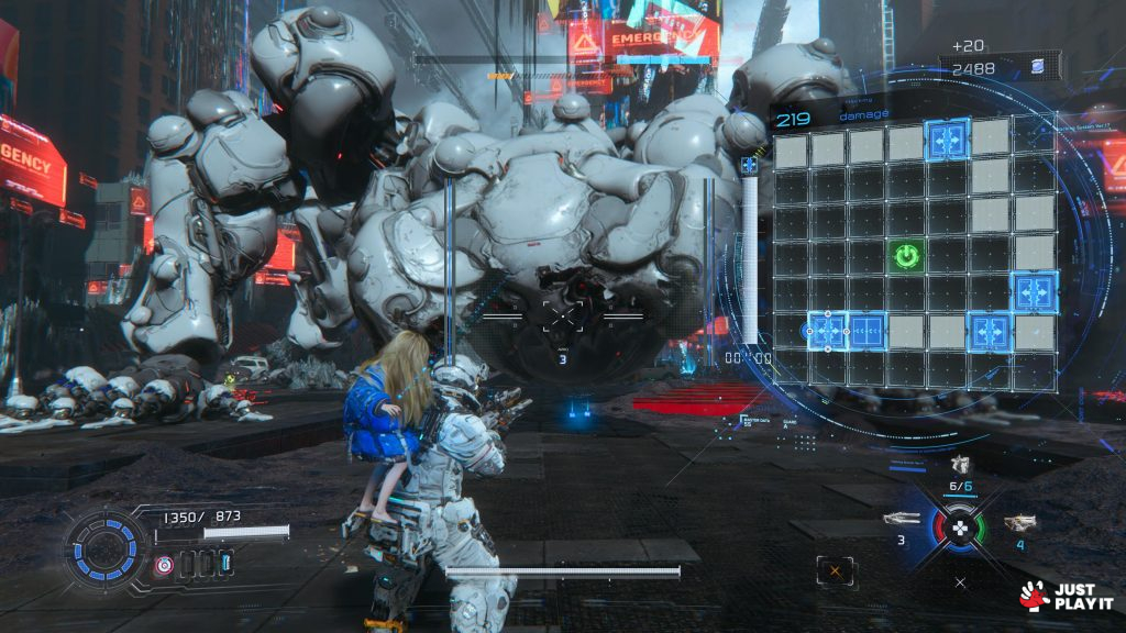 ما أعجبني في اللعبة هو نظام التطويرات المتنوع. يمكن تطوير كلتا الشخصيتين، سواء عبر تحسين قدرات Hacking وزيادة قوة اختراق “ديانا”، أو تقوية السلاح الرئيسي، أو زيادة تحمل بدلة Hugh. ويتم ذلك من خلال جمع عناصر تُعرف باسم “مكونات التطوير”، والتي يعثر عليها اللاعب أثناء تقدمه في المراحل.