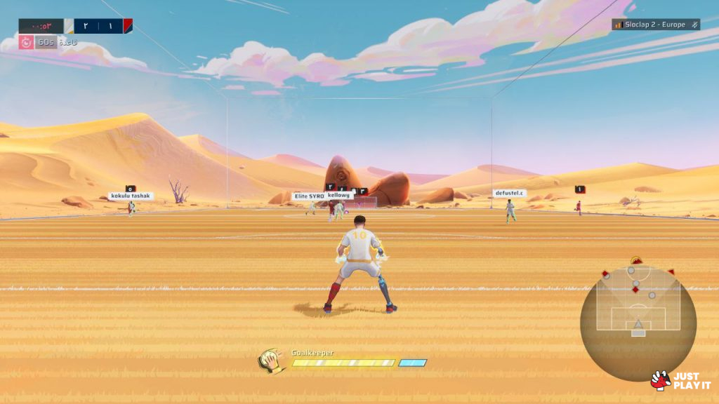 حرية كاملة للاعبين باتخاذ الدور الذي يناسبهم بحيث يمكن أن تلعب دور الدفاع و الهجوم و حتى كحارس مرمى في أي وقت ( طبعا بقائك قرب المرمى الخاص بفريقك سيحولك إلى حارس، و بمجرد الابتعاد عنه سيتغير دورد).