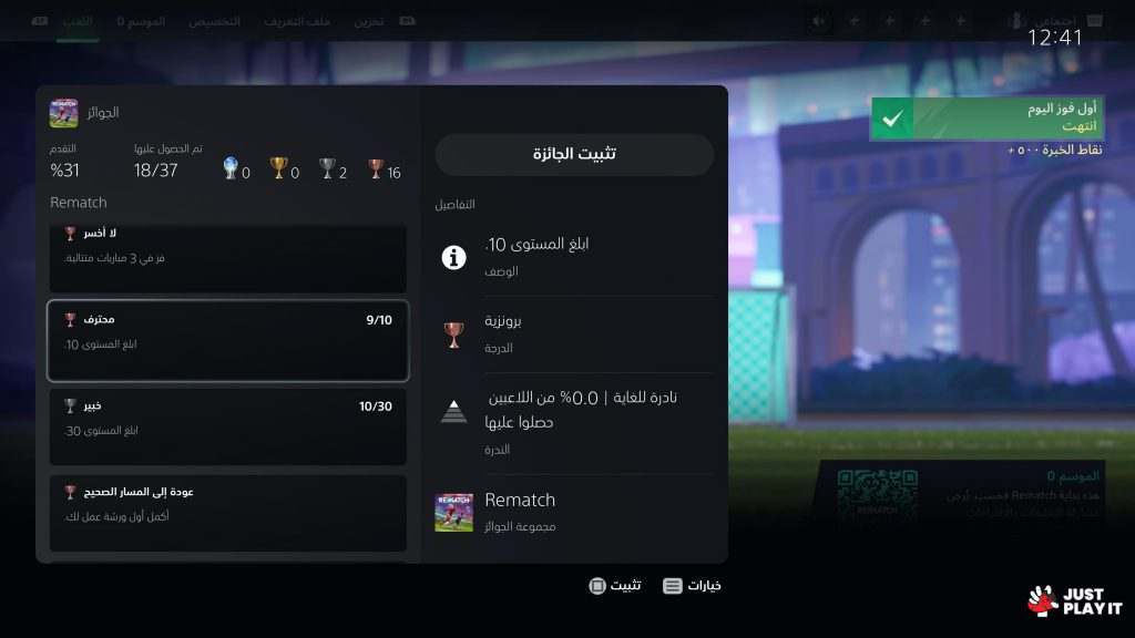 و غيرها، لكن للأسف الحلو مايكملش، البلاتينيوم لا يخلو من المشاكل، مثل تروفي الوصول للمستوى 10 الذي لا يتحقق حتى بعد وصولي للمستوى 26، ونسبة الحصول عليه ما تزال 0.0% في العالم، ما يوضح وجود خلل برمجي واضح يحتاج إلى تصحيح.