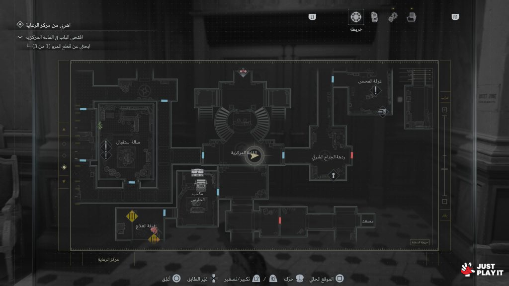 تقدم Resident Evil 9 منطقة شبه مفتوحة تذكّرنا بما شاهدناه في المنطقة الثانية من لعبة The Last of Us Part II. صحيح أن السلسلة دائمًا تسمح بالتجول والعودة لأماكن سبق زيارتها، لكن في هذا الجزء، أصبح الوضع مختلفا، حيث قدمت اللعبة منطقة واسعة بشكل أكبر، مع شعور بعالم مفتوح مصغر يسمح بالاستكشاف براحة أكبر. تصميم الخريطة جيد أيضا لكنه لا يكشف كل التفاصيل، مع رموز لموارد فاتتك في مناطق مررت بها. ومع أننا تمنينا وجود لمسة شبيهة بما في ريميك الجزء الثاني لتوضيح الغرف والأماكن التي اكتملت زيارتها بالكامل، لكن يبقى تصميم الخريطة ممتاز ويخدم تجربة الاستكشاف بشكل ممتع.