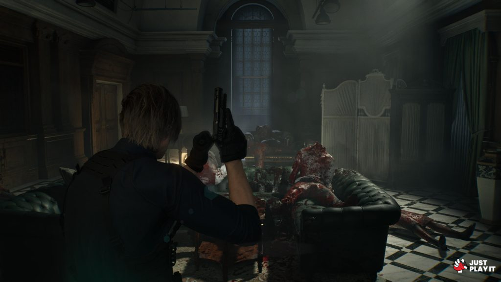 على عكس Grace تماما، تركز مراحل Leon على الأكشن، مع ترسانة من الأسلحة وخزانة كبيرة تسمح لك بحمل كمية كبيرة من الأدوات و العناصر. على عكس Grace أيضا، لا يعتمد Leon على الهرب أو التسلل بل على الهجوم المباشر، فإذا كانت Grace تفر من الأعداء و الزعماء الأكثر قوة، يعتمد Leon على الأسلوب التقليدي في مهاجمتهم وتدمير أحشائهم.