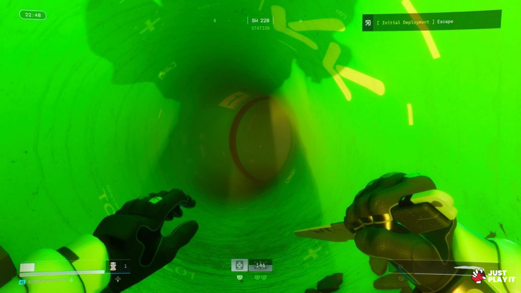و من هنا تتضح فكرة اللعب Extraction Shooter، حيث تنزل إلى الكوكب و تحاول أن تجمع العناصر والموارد الهامة وتنفذ العقود التي تم تكليفك بها و أخيرا محاولة الهروب و الاستخراج دون الموت.