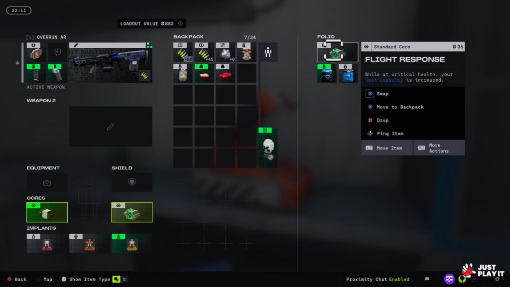 قبل دخول أي مهمة، ينبغي عليك تجهيز الـ Runner الخاص بك، بسلاح و رصاص، درع، مع إمكانية زرع نواة أو عناصر بدرجات مختلفة، تمنحك لياقة أسرع مثلا أو قدرة أعلى على التحمل، يمكن أيضا أن تأخذ معك بعض المواد الاستهلاكية كالعلاج و غيرها، كلها عناصر ستساعدك في المهمة، لكن تذكر، إذا لم تنجح ستخسر كل تلك العناصر، لهذا ليس عليك أن تدخل دائما بعناصر كثيفة، عليك أن تدرس قراراتك جيدا.