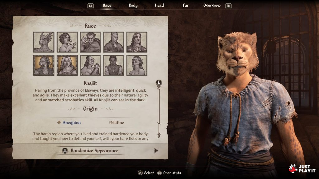 قبل انطلاقي في المغامرة كان علي تخصيص شخصيتي، و التخصيص عميق جدا بدايةً من الشكل و الجنس (ذكر أو أنثى) وصولا لتخصيصات أعمق تظهر بشكل متتالي ، لكن أولها و أهمها يبقى العرق و الذي سيحدد بنسبة كبيرة أسلوب لعبك و قدراتك