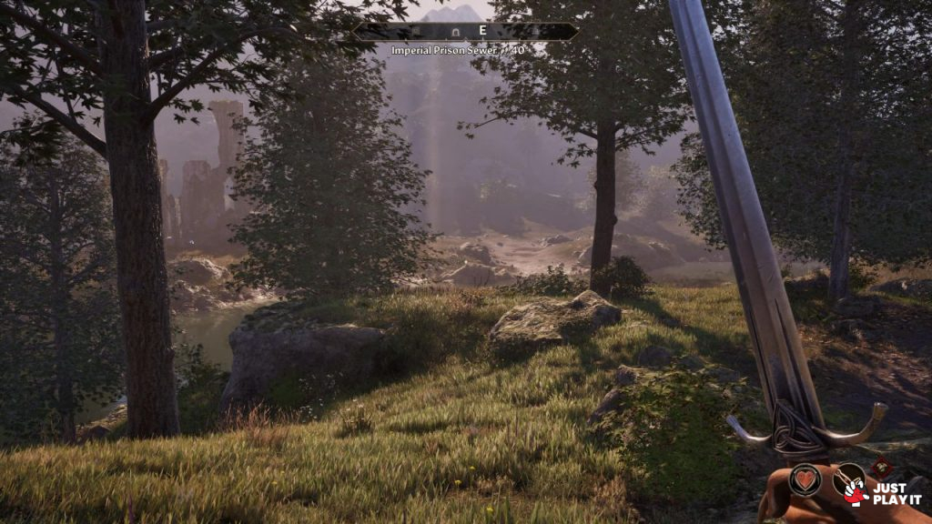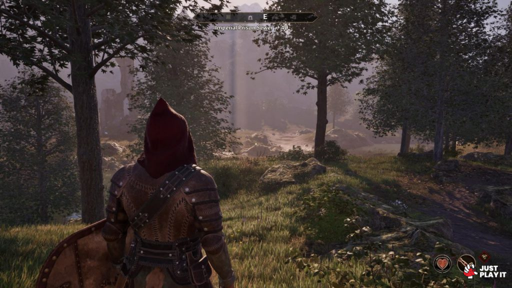 مع انطلاقي الفعلي في Oblivion لم يكن لدي سوى سيف و درع، أستطيع من خلالهما الضرب و التصدي، سواء بتحويل اللعبة إلى منظور الشخص الثالث أو الإبقاء عليها من منظور الشخص الأول و يتم ذلك بواسطة زر فقط و هو R3، و لو أن الأصل يبقى بتجربتها من منظور الشخص الأول حيث يمكن من جانب آخر ملاحظة ضعف الانيمشن و الحركة في منظور الشخص الثالث، لكن و باعتبارها تتيح لنا الاختيار فهذه نقطة إيجابية، فأنا كنت أوازن بين المنظورين تارةً المنظور الاول و تارةً أخرى المنظور من الشخص الثالث، فمثلا في وقت المعارك كنت أُفضل المنظور الأول و لكن في وقت التجول كنت أفضل منظور الشخص الثالث.