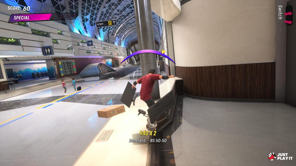ستلاحظ أن اللعبة لا تحتوي على طور قصة بالمعنى التقليدي، بل عبارة عن مجموعة من التحديات المختلفة التي تقوم بها في كل مرحلة، مما يتيح لك فتح مراحل جديدة لاحقًا. وبما أن اللعبة تركز على المهارة و التزلج الحر، فإن الهدف الرئيسي هو إتقان الحركات وتحقيق أفضل أداء ممكن، وليس متابعة سرد قصصي معتاد كما في الألعاب الأخرى.