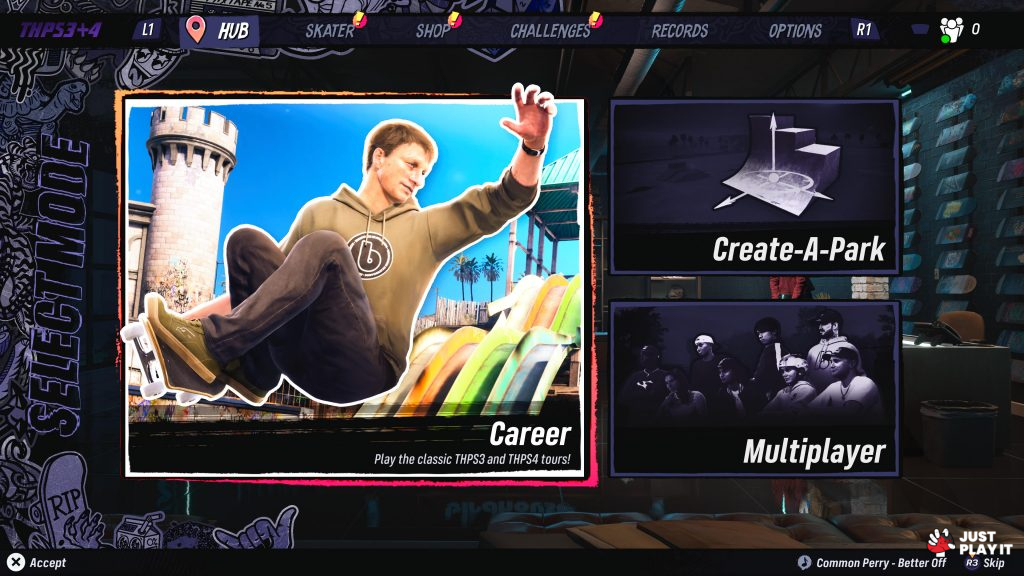 هو الطور الرئيسي الذي يضم جميع أنماط اللعب المختلفة ضمن تجربة موحدة و شاملة. و يمكنك الإختيار بين اللعبتين Tony Hawk’s Pro Skater 3 أو Tony Hawk’s Pro Skater 4، حيث تقدّم كل واحدة منهما مراحل وتحديات خاصة بها.