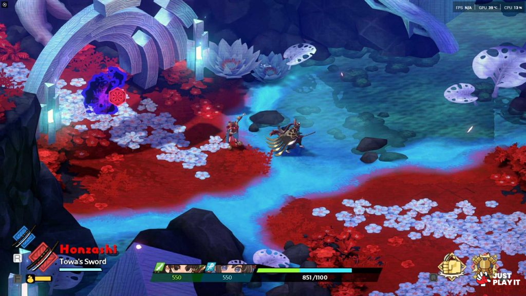 أسلوب اللعب متنوع ويتيح لك التحكم بـ8 شخصيات مختلفة، حيث يتكون فريقك في كل مرحلة من شخصيتين: Kagura وTsurugi، أي مسبب الضرر والداعم. ستلعب غالبًا بشخصية مسبب الضرر، مع إمكانية استخدام قدرات الداعم الخاصة.